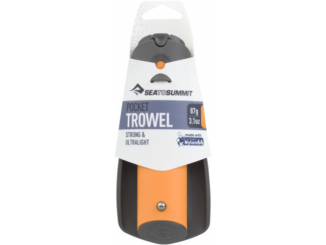 Składana łopatka do zakopywania odpadów organicznych Reinforced Nylon Pocket Trowel. Wykonana została z lekkiego i mocnego utwardzonego nylonu 66. Ponadto ma składany uchwyt, w którym można schować zapalniczkę lub chusteczki toaletowe. Łopatka Reinforced Nylon Pocket Trowel jest odporna na bardzo niskie temperatury. Lżejsza od łopatki wykonanej ze stopu anodowanego aluminium.