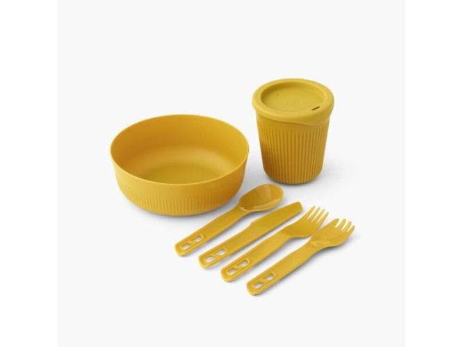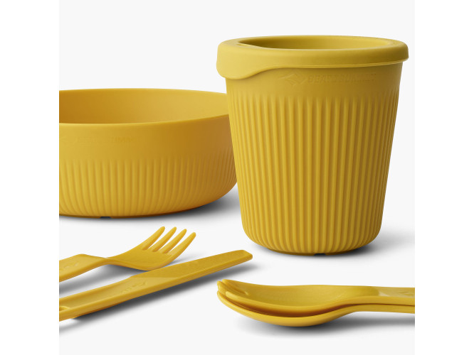 Zestaw naczyń Passage Dinnerware - wysokiej jakości, funkcjonalny zestaw kempingowy. Ścianki misek wykonane w technologii Cool Grip zapobiegają nagrzewaniu się naczyń, znacznie zwiększając komfort i bezpieczeństwo użytkowania. Sztućce Passage łączą się ze sobą na czas transportu – można też odwrócić jeden z elementów i połączyć jego uchwyt z drugim sztućcem, tworząc długą łyżkę lub łyżkowidelec. Miska ma strome boczne ścianki, które zapobiegają wylewaniu się jedzenia a zaokrąglone krawędzie przy dnie są idealnie dopasowane do sztućców Sea to Summit. Naczynia wykonane z wzmocnionego włóknem szklanym polipropylenu spożywczego zgodnego z normami UE.