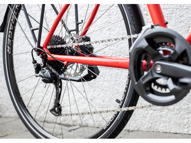 | Rama | Alpha Gold Aluminium, kompatybilna z DuoTrap S, wewnętrzne prowadzenie linek, hamulce tarczowe flat mount, mocowania bagażnika i błotników, 135 x 5 mm QR |