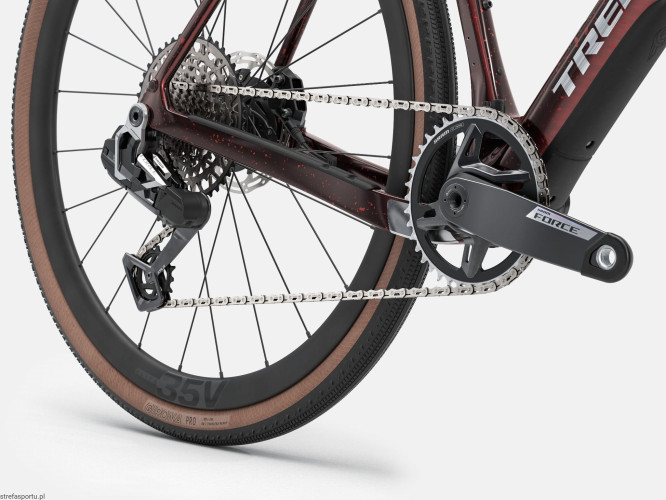 to rower gravelowy z włókna węglowego, na którym odkryjesz, co kryje się za horyzontem. Lekka rama z włókna węglowego wykorzystuje geometrię długodystansową Gravel Endurance, wyposażona jest w mnóstwo punktów mocowania oraz oferuje prześwit na opony 50 mm (zgodnie z pomiarem). Ponadto technologia komfortu IsoSpeed pochłania wibracje, dzięki czemu płyniesz po nierównościach i dziurach. Obfituje w usprawnienia w kluczowych punktach, między innymi koła i sztycę z włókna węglowego, a także napęd SRAM Force AXS XPLR E1.