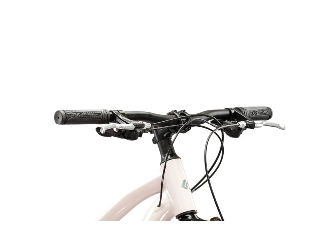 Amortyzowany widelec ze skokiem 100 mm zapewnia wysoką kulturę pracy oraz doskonałe tłumienie wibracji powstających podczas jazdy po nierównej i wyboistej nawierzchni.