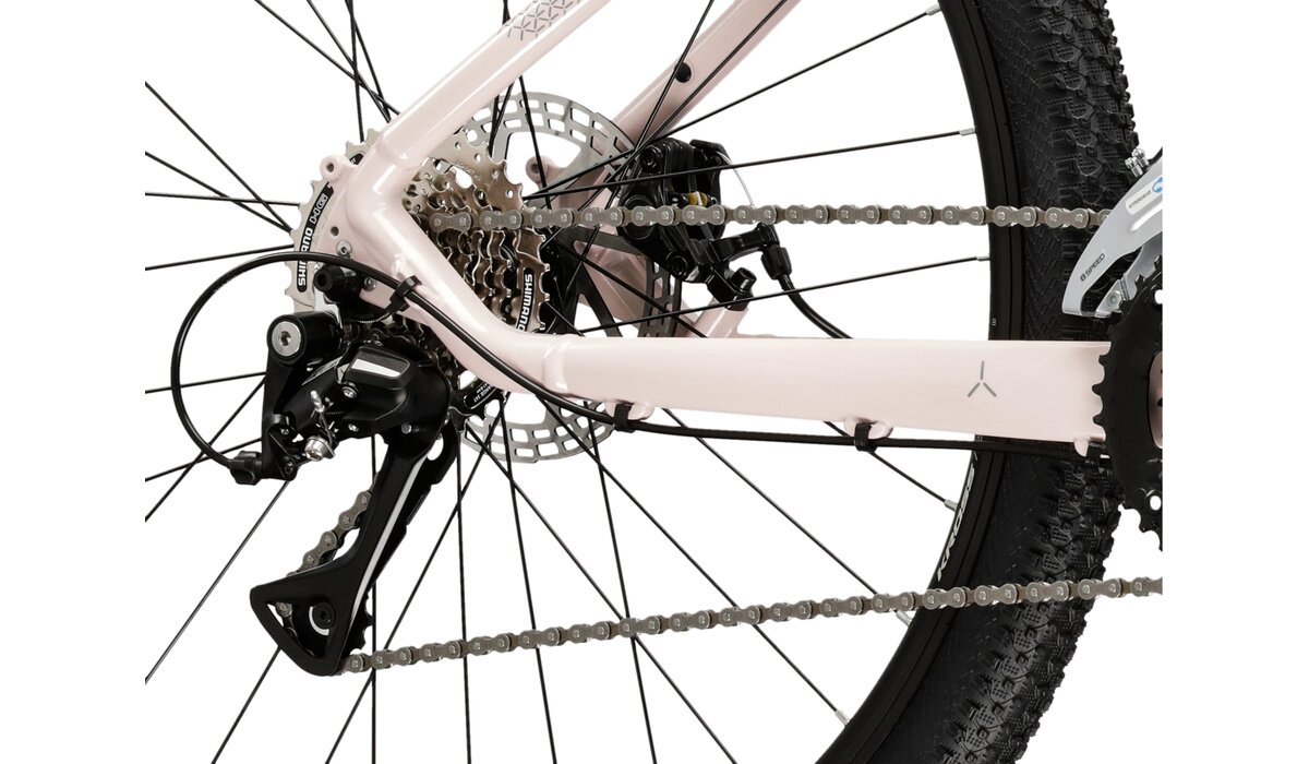 Tylna ośmiobiegowa przerzutka Shimano Acera M3020 oraz mechaniczne hamulce tarczowe w damskim rowerze górskim MTB Woman KROSS Lea 3.0