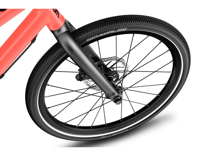 W rowerze zastosowano tarczowe hydrauliczne hamulce, z dostosowanymi do dzieci regulowanymi dźwigniami, aby bezpiecznie zatrzymać rower w każdych warunkach bez konieczności używania dużej siły.
