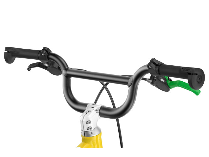 tylny hamulec oznaczony na zielono, stabilizator kierownicy, ergonomiczne siodełko, uchwyty dopasowane do wielkości dłoni dziecka i zakończone pierścieniami bezpieczeństwa, a wszystko to wyprodukowane bez toksycznych substancji. Kierownica w stylu BMX i osłona łańcucha dopełniają całości.