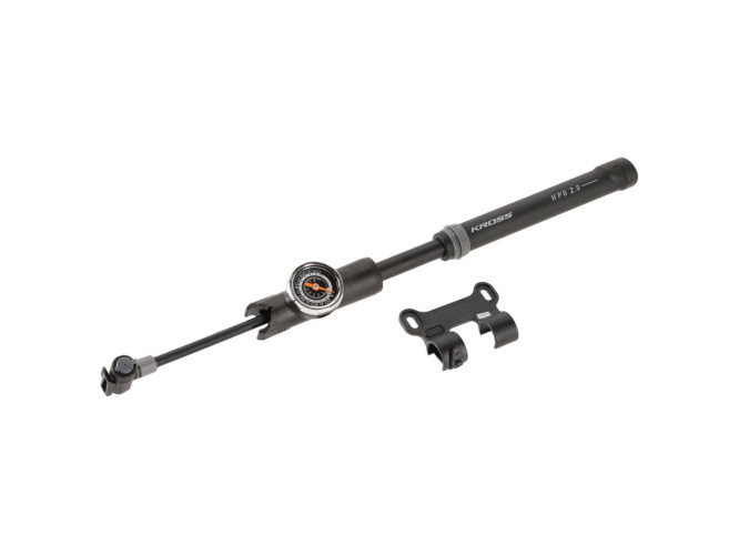 Pompka Kross HPG 2.0 jest nie tylko poręczna, ale również wygodna. Dzięki wyjmowanemu elastycznemu wężykowi brakujące powietrze w kole można uzupełnić bez przyjmowania niewygodnych pozycji. Z pomocą wbudowanego precyzyjnego manometru sprawdzenie ciśnienia nie będzie trudne. Co ważne, jest to konstrukcja z rodziny High Pressure, więc bez wysiłku można nią napompować również koła, które wymagają wysokiego ciśnienia. Wysokociśnieniowa pompka sprawdzi się w każdych warunkach, Kross wyposażył ją również w osłonę chroniącą zawór przed kurzem. W komplecie jest też uchwyt montażowy do ramy, ułatwiający transportowanie pompki.