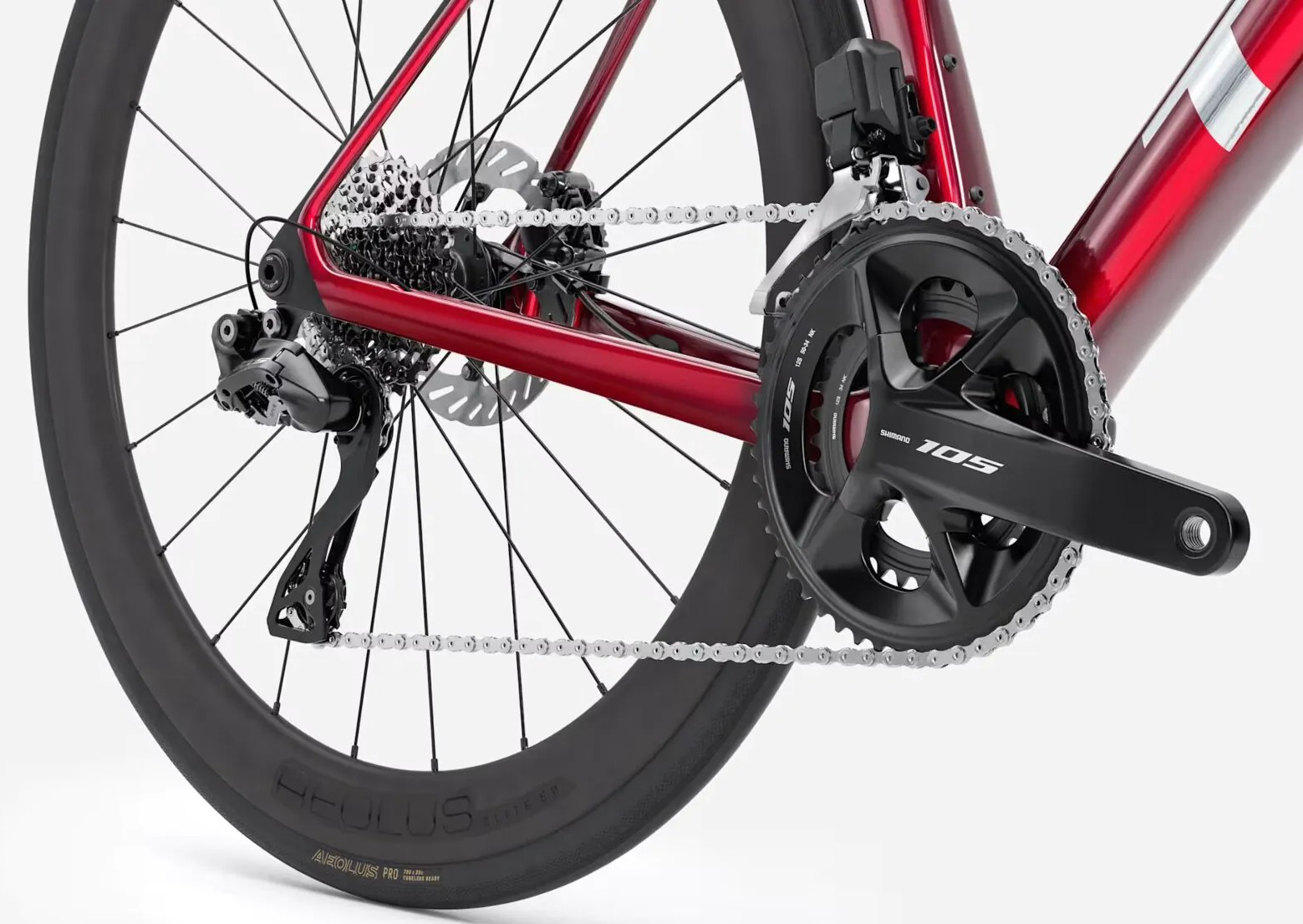 | Koło tylne | Bontrager Aeolus Elite 35, włókno węglowe OCLV, przystosowane do zastosowania bezdętkowego Tubeless Ready, profil obręczy 50 mm, bębenek 11-rzędowy Shimano, sztywna oś przelotowa 142 x 12 mm |