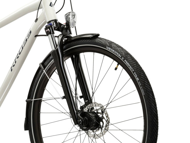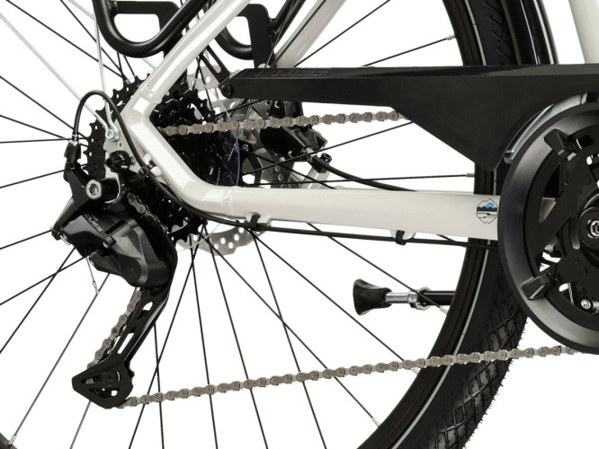 Zintegrowane z rowerem oświetlenie ułatwi jazdę po zmroku, a wysokiej jakości siodełko Selle Royal zachwyci Cię komfortem, jaki zaoferuje Ci podczas pokonywania długich tras. Dodatkowo, siodło zostało osadzone na amortyzowanej sztycy, co niweluje drgania powstające podczas jazdy po nierównościach.