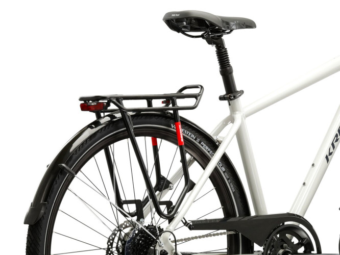 Tylny bagażnik, błotniki, podpórka oraz oświetlenie w rowerze trekkingowym KROSS Trans 5.0