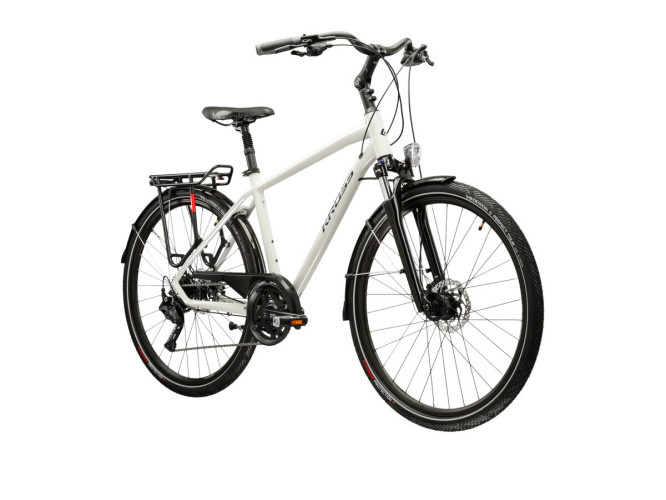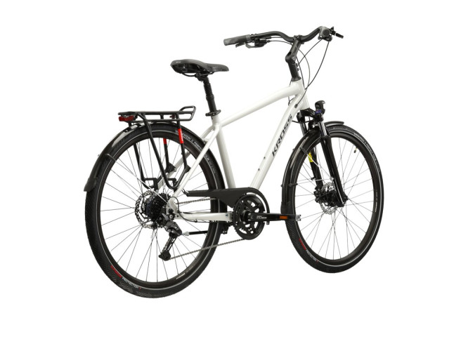 KROSS Trans 5.0 to rower turystyczny łączący cechy przydatne podczas rekreacyjnych wypraw, jak i codziennego zastosowania. Lekka, aluminiowa rama oraz amortyzowany widelec SR Suntour zapewniają komfort jazdy zarówno po asfalcie, jak i w trudniejszym terenie. Napęd Shimano Cues w systemie 2x9 umożliwia płynne dostosowanie przełożeń do każdej trasy, a hydrauliczne hamulce tarczowe gwarantują bezpieczeństwo i kontrolę. KROSS Trans 5.0 został zaprojektowany, aby zapewnić jak największy poziom komfortu zarówno podczas wypraw za miasto, jak i podczas dojazdów do pracy.