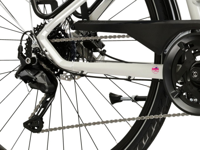 Zintegrowane z rowerem oświetlenie ułatwi jazdę po zmroku, a wysokiej jakości siodełko Selle Royal zachwyci Cię komfortem, jaki zaoferuje Ci podczas pokonywania długich tras. Dodatkowo, siodło zostało osadzone na amortyzowanej sztycy, co niweluje drgania powstające podczas jazdy po nierównościach.